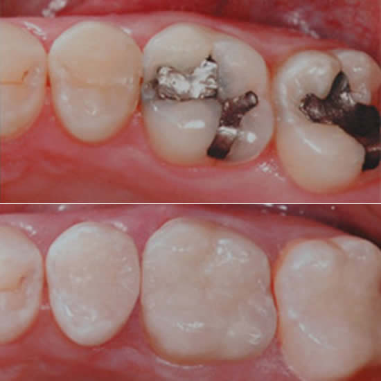 The modern tooth coloured composites bond into the tooth structure giving an added strength that the old fashioned silver amalgam fillings couldn’t ever do. They can be used in front teeth to match other teeth with their superior aesthetic qualities and can be used in the back teeth where strength for biting is essential.